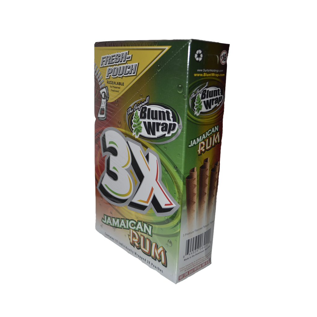 1 caja (15 paq. por caja) de Blunt Wraps con 3 piezas por paquete, contiene blunts sabor Ron jamaiquino. Excelente sabor!