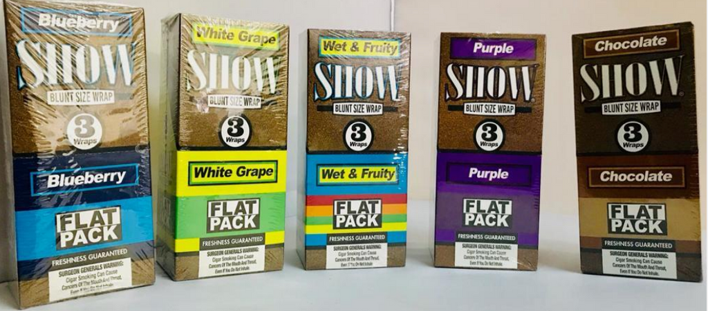 Blunts marca Show sabor Kiwi con fresa. Cada paquete contiene 3 blunts.