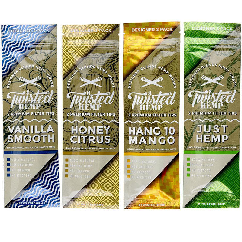 Esta caja incluye 15 paquete, cada paquete incluye 2 piezas de blunts y 2 filtros premium marca Twisted Hemp Sabor Cítrico