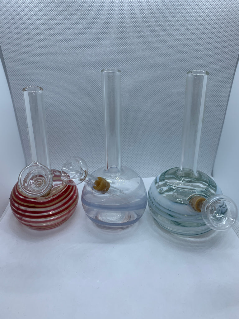 Discreto bong hecho de vidrio pirex, bowl removible para facilitar la limpieza y con diferentes diseños únicos.