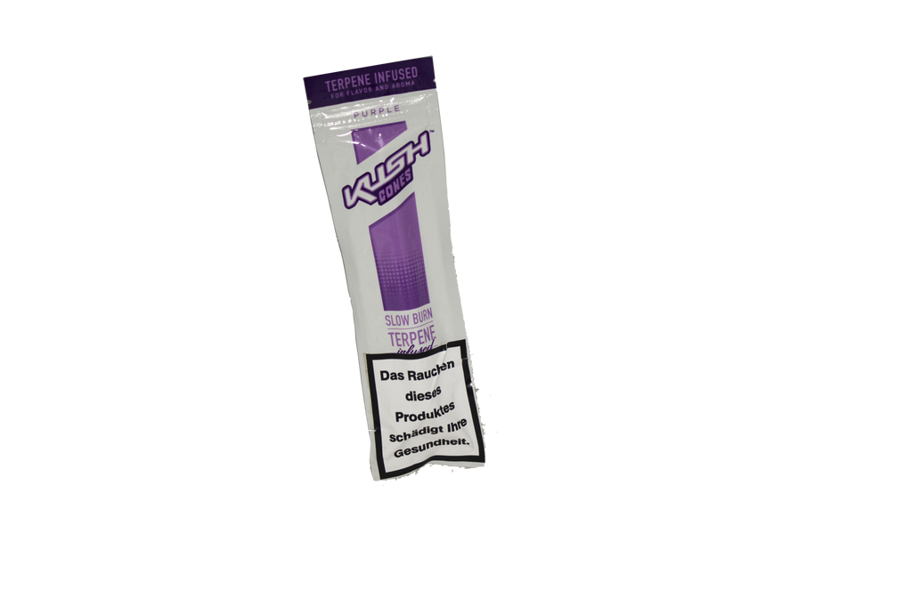 Blunts marca KUSH de cañamo sabor Purpura. Las hojas de este blunt son completamente naturales inficionados con terpeno, cada paquete contiene 2 piezas.