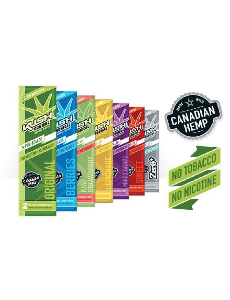 Blunts marca KUSH 100% de cañamo orgánico sabor Limonada. Las hojas de este papel son completamente naturales, cada caja tiene 25 paquetes y cada paquete viene con 50 hojas.
