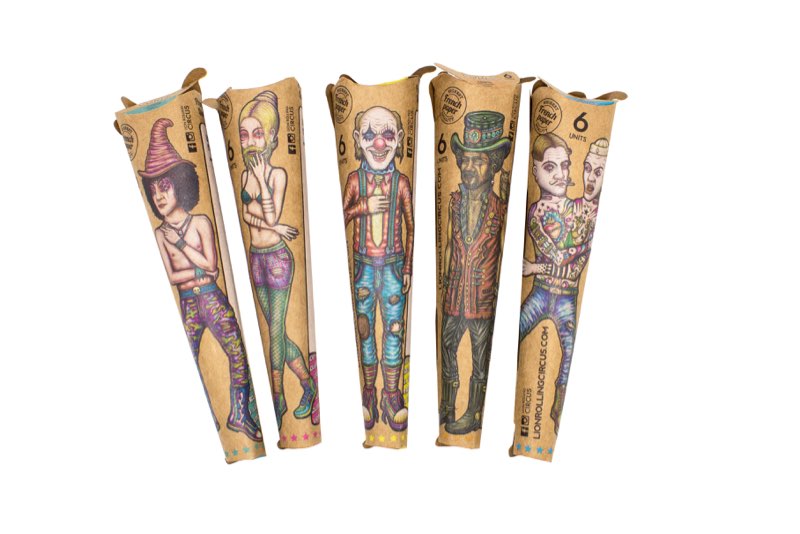 Conos pre-rolados marca Lion Rolling Circus con 6 conos por paquete. Cada cono tiene tus nuevos personajes favoritos! Escoge entre los 5 integrantes de Lion Rolling Circus!