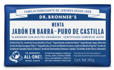 Dr. Bronners Jabón en Barra de Castilla Menta (140g.)
