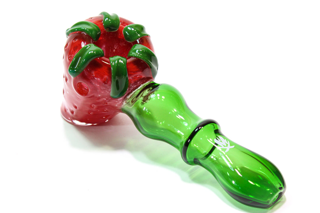 Pipa de Pirex premium marca Mathematix en forma de fresa. Todos los productos Mathematix son hechos orgullosamente en México!