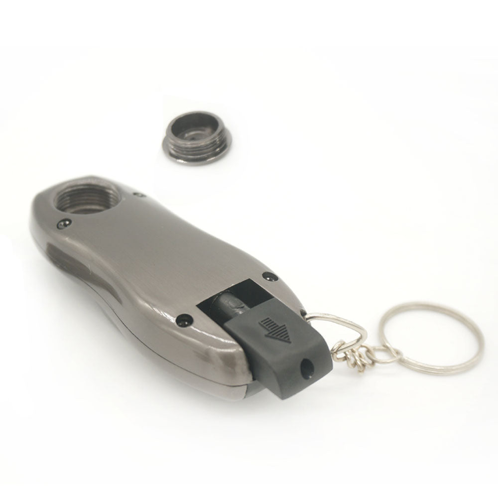 Creativa llavero y pipa, hechas de aluminio que se puede armar y desarmar para mayor discreción. Debido al material es muy fácil la limpieza de este producto.