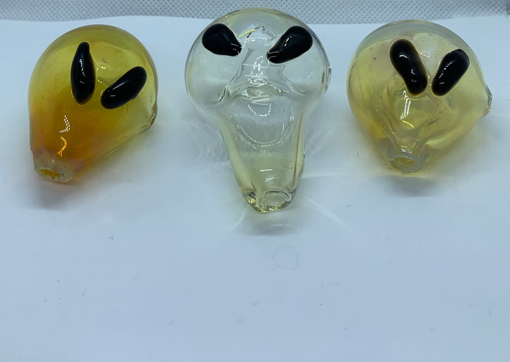 Pipa hecho en Mexico artesanalmente con cristal tipo Pirex. Modelo curveado que asimila una chistosa cara de Alien, compra la tuya!
