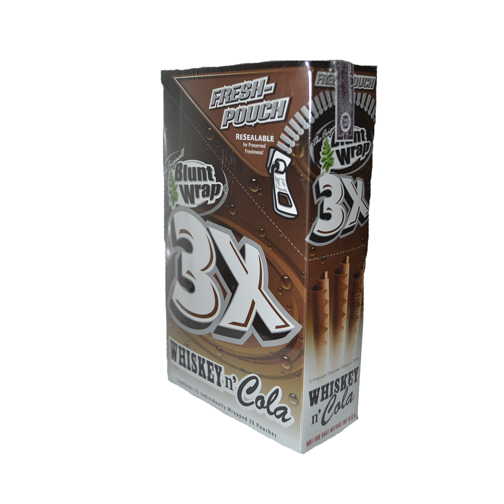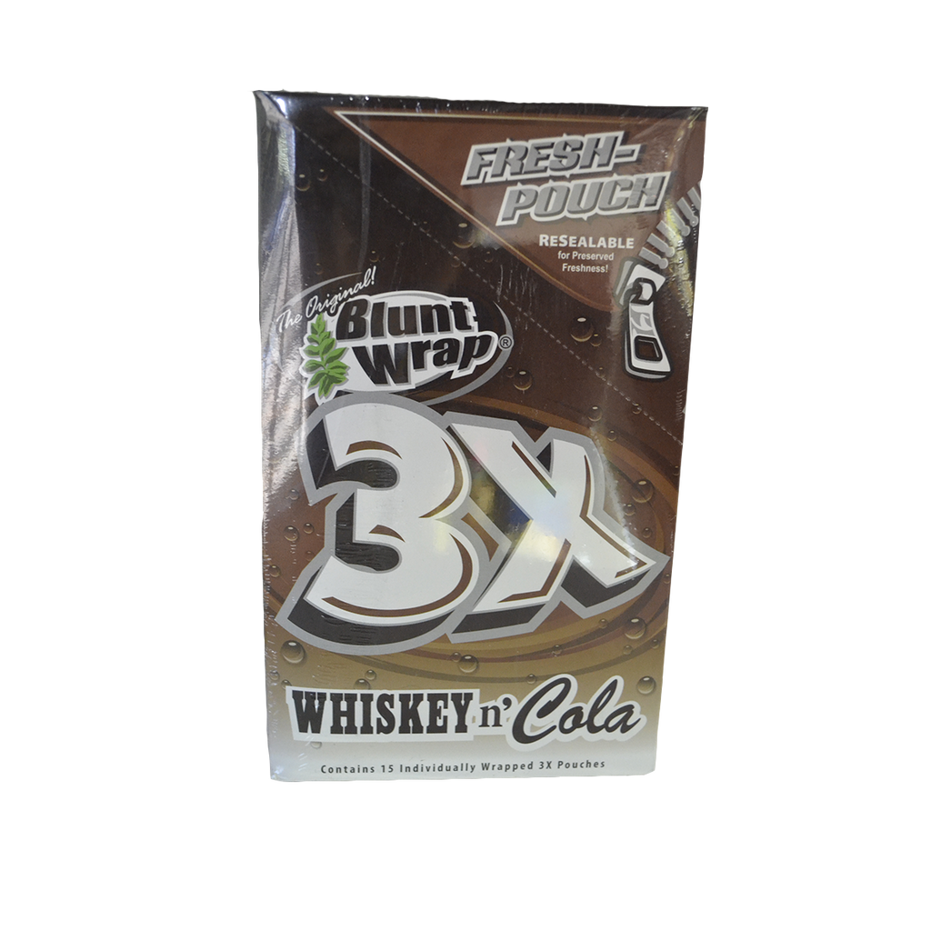 1 Pack of Blunt Wraps with 3 pieces per pack, containing Whiskey and Cola flavored blunts. Delicious!