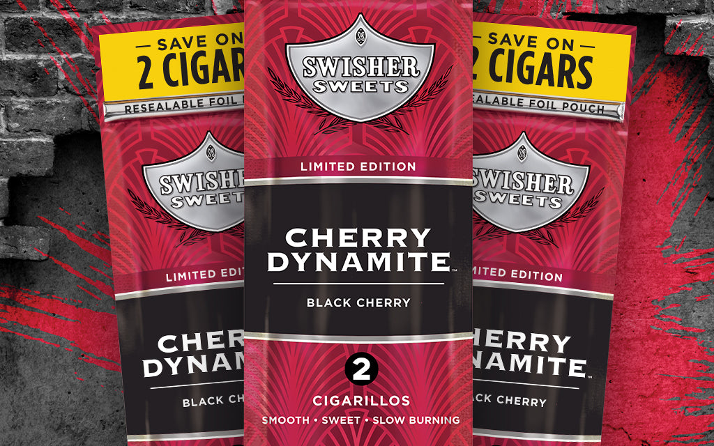 Swisher Sweets brand cherry flavor cigarettes. Each pack contains 2 pieces.